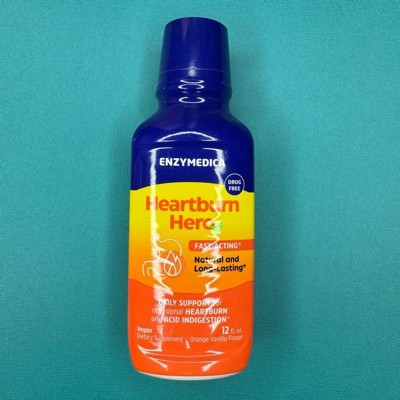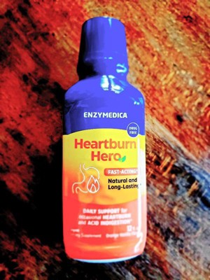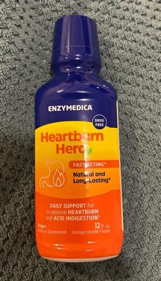 Quickly relieve heartburn with Heartburn Hero, a natural, non-drug alternative from Enzymedica, the #1 Enzyme Brand.* Heartburn Hero is the fast-acting and long-lasting natural solution for occasional heartburn or acid indigestion resulting from food, diet, or lifestyle choices.* Each serving of orange-vanilla flavored liquid includes natural ingredients—without the negative side effects caused by over-the-counter heartburn remedies.* Our key ingredient, alginic acid made from brown seaweed, forms a protective raft at the top of your stomach that helps hold acid back.* Clinically proven to be effective for rapid relief, alginic acid has been used for over a century.* Calcium carbonate neutralizes stomach acid, while prickly pear helps soothe the digestive tract, reducing irritation from acid.* Heartburn Hero is not a traditional acid blocker; instead, it works by keeping acid in the stomach where it belongs.* Feel the Digestive Difference after your next meal!*