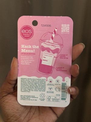 Introducing new, limited-edition #eosflavorlab Secret Menu - a drink-inspired lip balm collection! The indulgent Marshmallow Fluff flavor tastes like a cloud of lightly toasted golden marshmallows—sweet, cozy, and deliciously nostalgic. More than just a lip balm, this deeply conditioning treatment provides 24-hour moisture and ultra-protective care. Made with a rich blend of cocoa, shea, and avocado butters, it soothes and smooths dry lips for lasting comfort, day or night. Dermatologist recommended and crafted with sustainably sourced ingredients, this Super Balm delivers luxurious hydration and protection for irresistibly soft, healthy lips with every swipe.