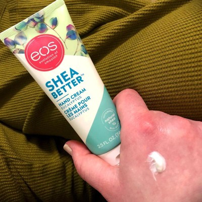 [This review was collected as part of a promotion.] The EOS Shea Butter Hand Cream has such a nice, thicker texture that gives your hands a great protective coating while being hydrating, but not greasy! The one I purchased is actually the Eucalyptus scent, and although I enjoy it, it’s a bit strong and made out of some artificial fragrance. I wish they would just eliminate any of that and it would be a five star product.