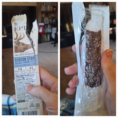 Bought as a total "impulse" buy at a local organic food store. It had been many, many years since I'd enjoyed a good strip of venison jerky and I bought this as a treat. After a couple of bites, it continued to disappoint. You couldn't taste the flavor of the meat, at all, since it was totally overpowered with pepper/salt. Looking at the packaging now I see it's blended with beef and formed into a strip. One would be better served just buying plain ol' "beef jerky" than this. I see this a lot nowadays, with salami coated on the outside with pepper - who wants to just taste pepper.