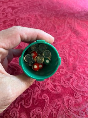 [This review was collected as part of a promotion.] Small and compact game. This is perfect to take on vacation. The green tube opens so the pieces can be stored inside. I have included a picture of all the items inside. This game doesn’t take much time and is simple to learn.