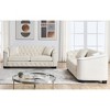 - Sturdy and Durable: Built with a solid wood frame for added sturdiness and durability. Features comfortable foam, soft cushions supported by a curved spring structure, and tufted buttons on the backrest and armrests for ultimate comfort.