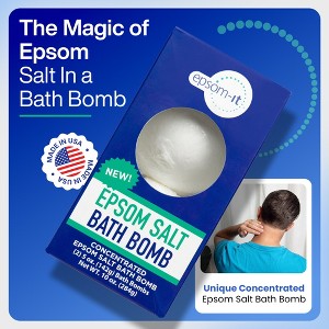 Epsom-It Bath Bombs provide a no-fuss, drop-and-soak solution to ease muscle discomfort. Packed with 7% concentrated Epsom salt, simply drop it in the bath, soak, and feel refreshed. Lightly scented, Epsom-It's concentrated Epsom Salt bath bomb is optimally formulated for post-workout use and general muscle discomfort. It's the "serious" bath bomb for your everyday muscle issues!