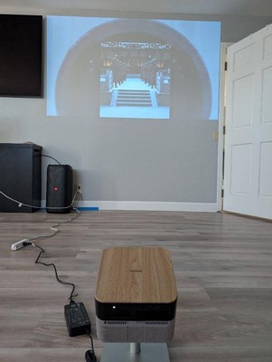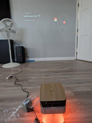 [This review was collected as part of a promotion.] This little box is absolutely amazing!! First of all, it's sooo easy to set up. You literally plug it in, download an app, and the rest pretty much takes care of itself. Next, the picture is so clear. We just used an old sheet to test it out. We plan on buying a projector screen, but the clarity on the sheet was clearer than I could imagine. The box uses your wifi, so you have all the streaming apps, like Netflix, Hulu, etc. And, the projector has a Bose sound system in it. Lastly, it's pretty! It's not clunky, and it has ambient lighting on the bottom that can be adjusted. Overall, this product has blown me away. The screen adjusts from 30 to 150 inches, so you can have a BIG screen if you so choose. We can't wait for movie nights in the back yard.