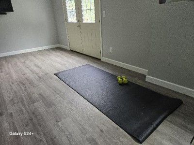 This solid black fitness mat measuring 7.6 feet by 3 feet is perfect for your at-home fitness routine. Made with durable, high-density PVC, it provides non-slip traction during workouts for added peace of mind. This fitness mat is designed to fit under most exercise equipment. Plus, it helps protect your floor from damage and reduce vibrations.