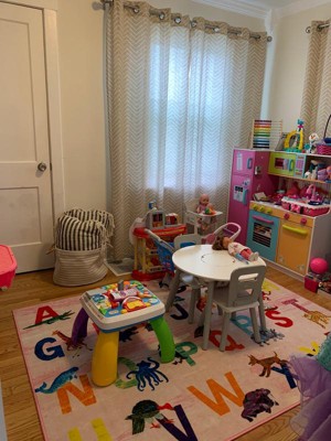 A: Yes, its cheerful design and educational elements make it ideal for classrooms and playrooms.