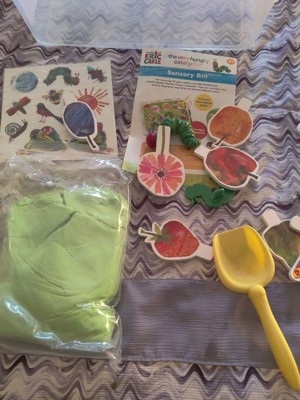 - This sensory bin brings the world of The Very Hungry Caterpillar to life, filled with 2.5 lbs of green sensory sand, a Very Hungry Caterpillar Toy, foam accessories, a shovel, sand stamp, colorful clings, and more for endless educational play