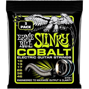 Guages 10-13-17-26-36-46. Pack of 3. Engineered to maximize output and clarity, Ernie Ball Cobalt Slinky Guitar Strings are the latest innovation in string technology. Seeking to provide guitarists and bassists with a new voice, Cobalt strings provide an extended dynamic range, incredible harmonic response, increased low end, and crisp, clear highs. Cobalt provides a stronger magnetic relationship between pickups and strings than any other alloy previously available. Cobalt Slinkys are also soft and silky to the touch, making string bending a breeze.
