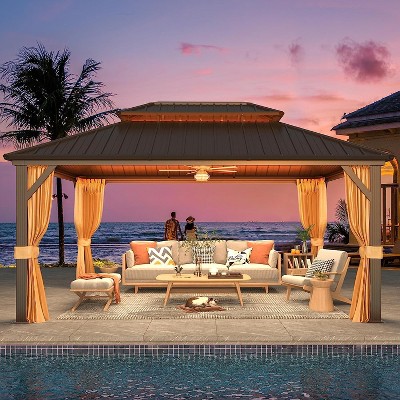 Erommy 12'x16Ft Hardtop Gazebo with Aluminum Composite Double Roof for Patio Lawn and Garden
