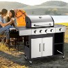 Elevate your outdoor cooking experience with this versatile 4-burner propane gas grill with side burner, ideal for family gatherings and large events. The 464.2 square inches spacious cooking area allows for multiple dishes to be cooked simultaneously. With a powerful 49,000 BTU output, this grill ensures precise temperature control and even heat distribution, while the built-in thermometer allows real-time monitoring of the cooking process. Constructed from stainless steel, the gas grill ensures durability for long-term use. The full-size slide-out grease tray simplifies cleaning. With its swivel wheels, this barbecue grill can be effortlessly relocated to suit your needs, making it perfect for backyard barbecues, patio gatherings, and camping trips.