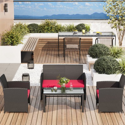 EROMMY 4 PCS Outdoor Seating Group with Cushions for 4 Person