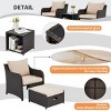 Modern, elegant styling and solid build quality, are the hallmarks of this 5-pieces patio furniture set. The straight lines of the frame are softened with hand-woven resin wicker. The 2-tier side table offers you extra space to store books, drinks, or whatever else you like. Great size for a small apartment balcony, an ottoman can be placed under the chair, and a side table can nest together for you. Featuring rattan, this seating set exudes elegance and comfort in a classy way. This lounge chair set with a storage side table is the perfect laid-back spot to spend your time!