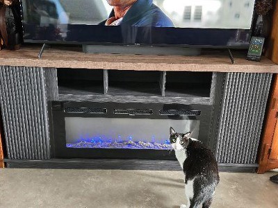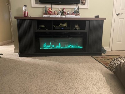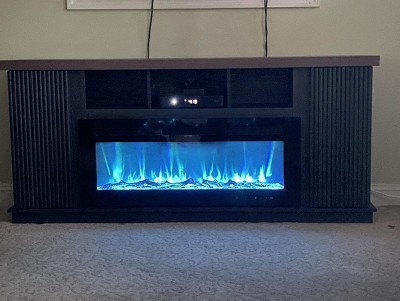 Let me start by saying I had been looking for a fireplace TV stand for months when I came across this one. I knew I wanted a double sized one, and one that was taller in height, but the price point on most of them is just ridiculous. I found this item when it was 75% off and didn't think twice about hitting the buy now button. (So glad I did too) Product arrived quickly and in good condition. Overall it was simple to put together, although the directions could have been better. The stand itself is made of particle board so it looks nicer than it is and time will tell how well it holds up. This piece has definitely elevated the look and feel of our home.