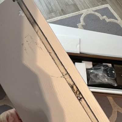 First it looked like the box was always opened and retapped. Came broken in so many spots. Pieces are bowed. Not white at all!!!! It’s like a white wash so more grey looking. Doesn’t have separation that dogs can see each other. Pieces that need holes don’t have holes. The drawer sliders are the pieces backwards. And really cheap fake wood feel. My husbands hates it! Returning for sure.