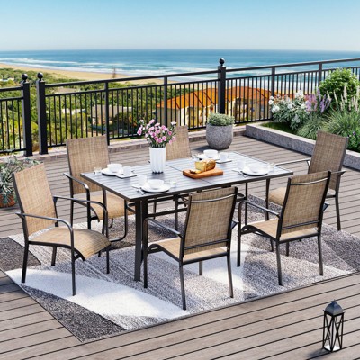 【Weather Resistant】Made of powder-coated iron frames and equipped with rust-proof screw caps, our outdoor dining table and chairs are all-weather resistant and low maintenance.With premium quality, this patio dining set can transform your backyard, porch, or poolside into a comfortable dining area, creating an outdoor oasis of relaxation for you.