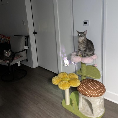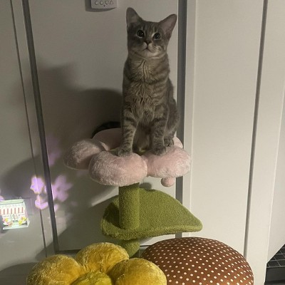 This Flower Mushroom Cat Tree was inspired by the previous Flower Cat Tree. This cute cat tree is adorned with beautiful pink&yellow flowers, adding a touch of elegance and style to your home decor. Adding a cute mushroom design, it serves as both a cat condo and a resting platform. The curved leafy platform will give your cat a sense of semi-enclosed security. This modern cat tree design has a streamlined motion with multiple platforms that allow cats to climb and jump on the cat climbing stand. This cat tower is not only an adorable design of cat furniture but also features many cat toys to keep fur kids entertained.