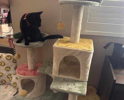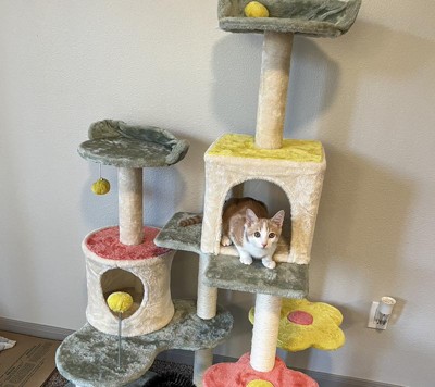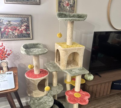 Cute cat tree but within a week of having it the stitches in the flowers already broke open and the stuffing is out.