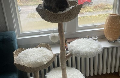 It’s a decent dupe for the Mau trees that I love but don’t want to spend $300 on. I bought this on sale for about $100 and my cat loves it! The fuzzy covers aren’t the highest quality but it looks fine from afar and my cat doesn’t know the difference. I’m not a fan of the typical cat trees I see so this is a nice alternative that fits my style better.