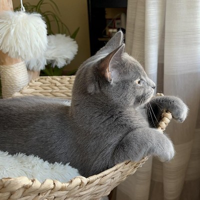 Our kitten loved this! She was in it all the time. However, she’s pretty small, and it still only lasted about 6 month before it broke at the base. I don’t how it could ever stand up to a full grown cat. Or perhaps a grown cat wouldn’t jump around on it so much. Other than that we loved it. It looked great in the living room until it broke.