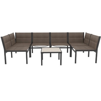 Seating Piece 1: Patio Arm Chair: 34.6 inches (H) x 23.6 inches (W) x 22.8 inches (D), 15.2 inches (seat back height), 15 inches (seat depth)
