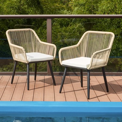 EROMMY Outdoor Patio Wicker Bar Stools Set Of 2, Pe Wicker Rattan Bar Stools With Removable Cushions, Ergonomic Armrests & Backrest