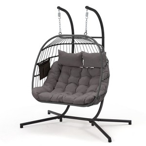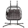 - 【Sturdy & Durable】 Crafted from a sturdy steel frame, this double egg chair ensures exceptional stability, promising years of reliable use. Its surface boasts a protective powder coating, effectively preventing rust formation, thus extending its lifespan. The basket of this swing egg chair is skillfully wrapped in weather-resistant PE rattan, offering both a smooth texture and enduring quality.