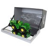 This exceptionally detailed 1/32 scale John Deere 8020 tractor commemorates the 80th anniversary of the ERTL company. This tractor is constructed with a die-cast metal body and is configured with front and rear singles. It is fixed to a commemorative display base with ERTL 80th logo engraved insert. It comes packaged in a special ERTL 80th anniversary display box. According to the manufacturer, this replica is recommended for ages 14+ years, meaning it is designed for display only and not for play.