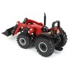 This 1/64 scale Farmall 105A Tractor with Loader is made by ERTL. Designed for Case IH fans ages 3 years and older, this tractor features a poseable front loader and an open station configuration with fenders. Other features include soft feel PVC tires, an upright muffler and die-cast metal parts. Its rear hitch is compatible with most 1/64 scale ERTL implements and accessories. According to the manufacturer, this toy is recommended for ages 3+ years, making it great for play and display!