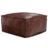 Make a tasteful addition to your home décor with the Erving Coffee Table Pouf. The pouf is upholstered in a distressed look aniline-dyed genuine buffalo leather that wears and softens over time. Perfect size for a coffee table, stand-in footrest or spare seating. This versatile pouf is sure to enhance the style of your space.