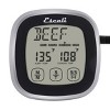 The Escali Touch Screen Thermometer and Timer feature an oven safe stainless steel probe and braided steal cord. The easy-to-clean touch sensitive controls are located on the extra-large backlit display. Set a custom temperature alert or choose from a library of suggested internal cooking temperatures for beef, pork, chicken, turkey, veal, lamb, ham and fish. The included timer function will count up or down and recall previous timers with the press of a button.