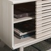 Bring chic style and elevated functionality to your home with our Esma sideboard. Clean lines and sleek proportions add a dose of charm and practicality to our sideboard. Its sleek rectangular profile is elevated upon tapered legs for a modern touch. A beautifully detailed slatted surface adds eye-catching dimension and detail to our storage unit. Featuring a white finish, our low sideboard blends smart design and effortless style. It features an open shelf, drawer, and roomy cabinets to add plenty of storage and display space to your living room, entryway, or dining space.