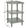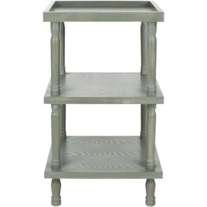 This Esmeralda Side Table speaks to the twenty first century traditionalist with its classic details and timeless construction. Esmeralda's three tiers of shelves in an ash grey finish are perfect for showcasing books, photos, or vintage treasures.