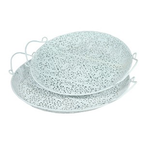 Essential Decor & Beyond 2-Piece Set White Oval Metal Decorative Trays With Handle