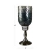 - Material: Each candle holder has a decorative, footed base that supports a twisted or ribbed stem. The stem holds a goblet-shaped glass hurricane with a mottled or textured surface.