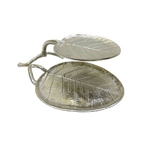 Essential Decor & Beyond Aluminum Cast 2-Tier Oval Leaf Tray in Silver