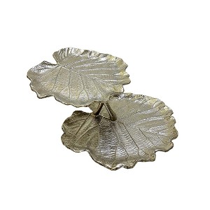 Product Name: Essential Decor & Beyond Aluminum Cast 2-Tier Round Leaf Tray in Silver