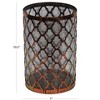 - Color: The outer metal shell has a distressed finish, with a primary color of antique dark bronze with a distressed, rustic copper-colored pattern. The inner glass hurricane is transparent with a subtle amber/golden color.