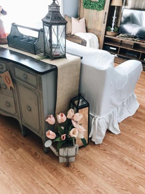 [This review was collected as part of a promotion.] I love how chic my Surefit Essential Twill Ruffle Sofa Slipcover in white looks. It goes great with my living room decor. I have the relaxed fit which is great because it can be adjusted for different size couches. I also like that it can be adjusted to either tie or tuck for the look you are going for. Also a huge plus is that it is machine washable, especially with kids. I have thrown it in the wash already, because of kids. I can say with certainty that it has held up great post-wash and kids. It came without loose threads and remains like that after washing. Huge plus! I love the tied look, but with a one year old pulling on the actual ties I have kept the tuck look. I highly recommend Surefit Essential Twill Ruffle Sofa Slipcover. I will definitely be buying other colors so I can change in between washes.