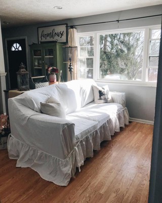 [This review was collected as part of a promotion.] I love the Essential Twill Ruffle Sofa Slip Cover, it is so beautiful, I put it on my couch and it changed the whole look of my living room. The white color and the ruffles gives my living room a crisp clean elegant look.