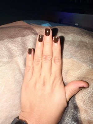 The actual perfect fall color, chipped some after about a week but stayed on and looked great for longer than expected!