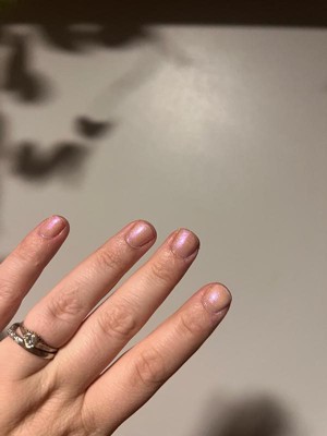 [This review was collected as part of a promotion.] The color is so light its hard to show in photos. It makes as a great topper to a color but not on its own. I prefer glitter on my nails so its a great top coat. I run my nails under cold water to dry them quickly. I have gotten a lot of compliments. The price is reasonable too.