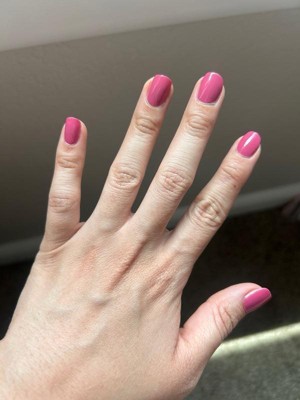 [This review was collected as part of a promotion.] This pink nail polish is an absolute gem! The color is so vibrant and eye-catching, it instantly brightens up my day. It applies smoothly and evenly, with just the right consistency to ensure a flawless finish every time. Plus, it dries relatively quickly, so I don't have to wait around forever for it to set.