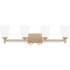 Opal etched glass shades cast a soft glow in the Esther bath light collection. The classic silhouette is finished in bronze gold and can be installed with shades facing up or down depending on your lighting needs. Whichever size option you choose for your vanity, Cecilia is designed to easily coordinate with a variety of traditional home decor styles.