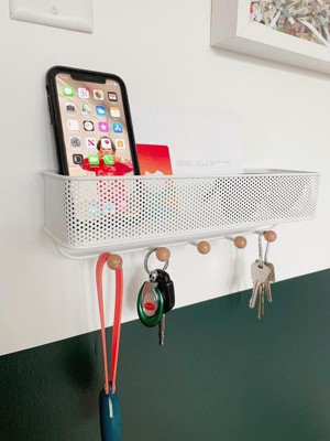 I bought this as a gift and the recipient loves the look. We both appreciated the quality of it: sturdy hooks, felt bottom on the basket and it’s magnetic! With this in place, there’s a place for their keys, wallet and “out the door” items that regularly get misplaced.