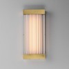 A colonnade of faceted crystal columns form these rectangular wall sconces suitable for wet locations. The crystals are backlit with an evenly distributed LED light source that is set within non-corrosive Aluminum and Stainless Steel frames. With an extension compliant for ADA applications, this collection can be used on the interior or exterior of any space.