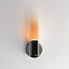 Minimalist in form and futuristic in styling, a gradient color effect applied to cylindrical glass shades provides a dynamic lighting effect. A Polished Gunmetal LED housing supports the glass adds a mirror like effect to the highly reflective glass. The resulting effect is a replication of the LED light along the length of the glass. Available in a mirrored Gradient Smoke or Gradient Amber glass, the finishes remarkably coordinate with many interior color palettes.