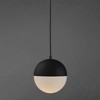 Spun metal semi spheres finished in Satin Nickel, Metallic Gold or Matte Black, cap a Satin White glass shade. Installed into each fixture is an omni-directional LED bulb that evenly illuminates the glass while providing long life operation. Material: Glass, Finish Color: Black, Width: 7.75", Height: 8.5", Length: 7.75", Lamping Type: LED, Number Of Bulbs: 1, Wattage: 9 Watts, Dimmable: No, Moisture Rating: Dry Rated