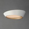 A distinctive slant defines this series of flush mounts. Finished in an exterior sandy Matte White finish with an interior in Gold, the flush mounts add unique flair to your ceiling. The smallest model is wet location rated and can be used on wall as well. Material: Steel, Finish Color: White/Gold, Width: 19.75", Height: 4.75", Length: 19.75", Lamping Type: LED, Number Of Bulbs: 1, Wattage: 42 Watts, Cri: 90, Color Temperature: 3000 Kelvin, Lumens: 1320, Moisture Rating: Damp Rated
