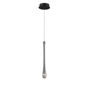 The classic teardrop glass shade is elevated in a luxurious collection of pendant configurations using substantially dense glass that are hand blown in elongated forms and curated into various color combinations. Suspended within the long, slender glass is a similarly long and slender socket to illuminate an energy efficient LED G4 lamp at the base of the glass. The slender tube running within the glass also supports the glass with elegantly flat thumb screws in coordinating finishes. Choose from Matte Black metal with Mirror Smoked glass for a moodier ambience, crystal Clear glass that accentuates the thickness of the glass walls paired with transitional Satin Nickel metalwork, or celebrate the design with effervescent Bubble glass and plated Gold metalwork.