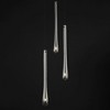 The classic teardrop glass shade is elevated in a luxurious collection of pendant configurations using substantially dense glass that are hand blown in elongated forms and curated into various color combinations. Suspended within the long, slender glass is a similarly long and slender socket to illuminate an energy efficient LED G4 lamp at the base of the glass. The slender tube running within the glass also supports the glass with elegantly flat thumb screws in coordinating finishes. Choose from Matte Black metal with Mirror Smoked glass for a moodier ambience, crystal Clear glass that accentuates the thickness of the glass walls paired with transitional Satin Nickel metalwork, or celebrate the design with effervescent Bubble glass and plated Gold metalwork.